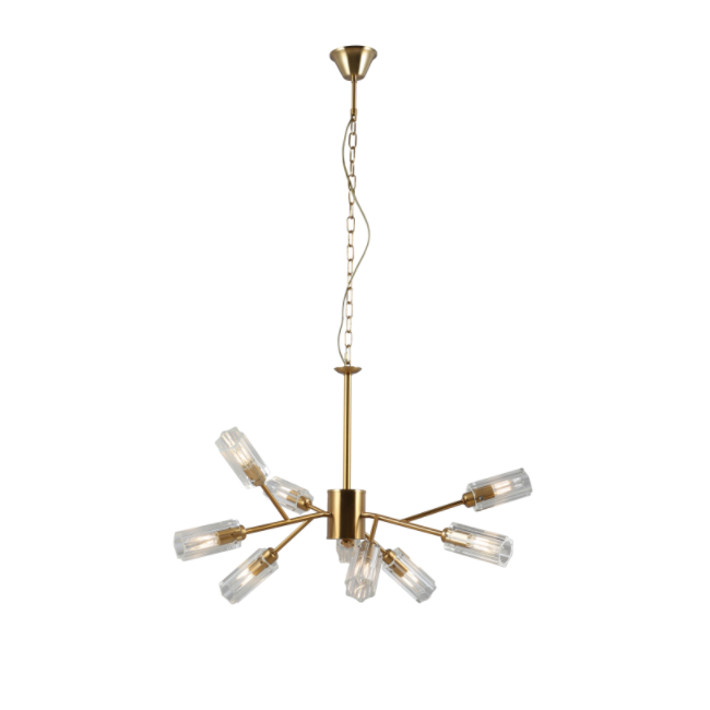 Mocne oświetlenie 9 światła Szklany Złoty Żandole: 9 żarówek E14 jest ułożone w kształcie rozgałęzienia promieniowego. Dzięki precyzyjnym obliczeniu kąta osiąga ono 360 ° niezakłócone oświetlenie ze średnim oświetleniem 300, spełniając potrzeby oświetlenia komercyjnego i domowego 12-20㎡.